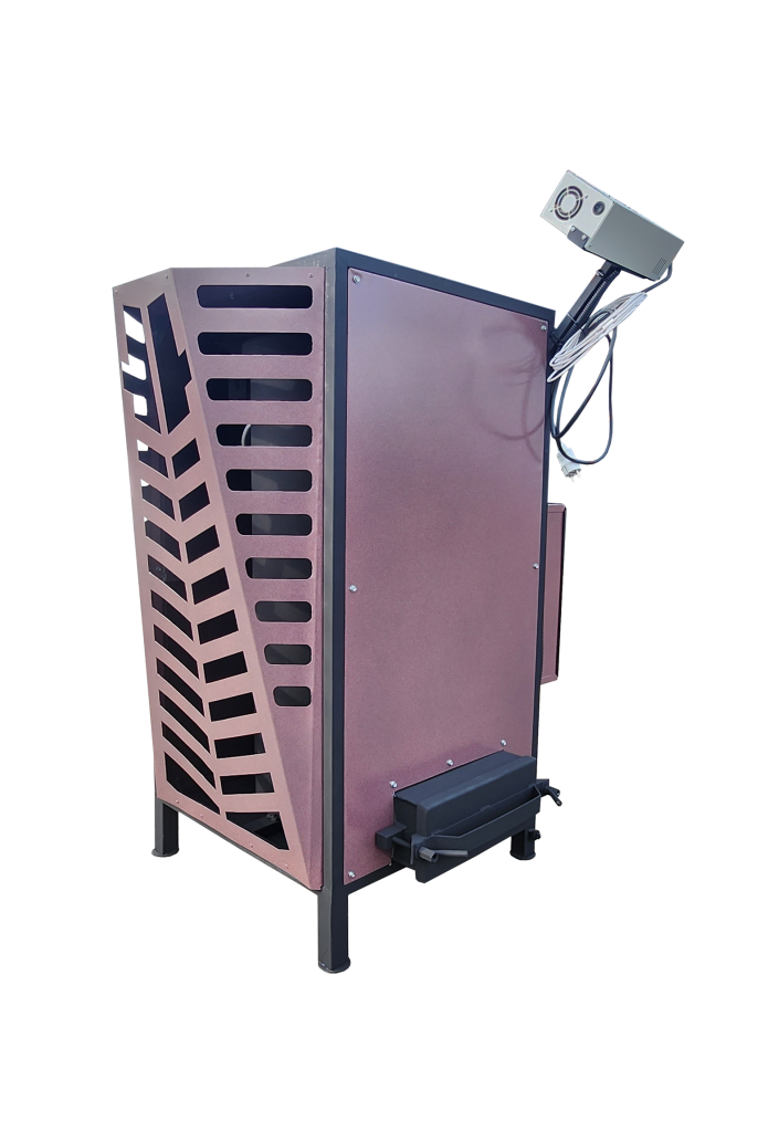 Режимы работы / включения / отключения, температура в помещении и топки регулируются с помощью блока автоматики. Имеется защита от перелива масла, выключения электричества. Если пламя гаснет, по какой-либо причине, также срабатывает защита.
