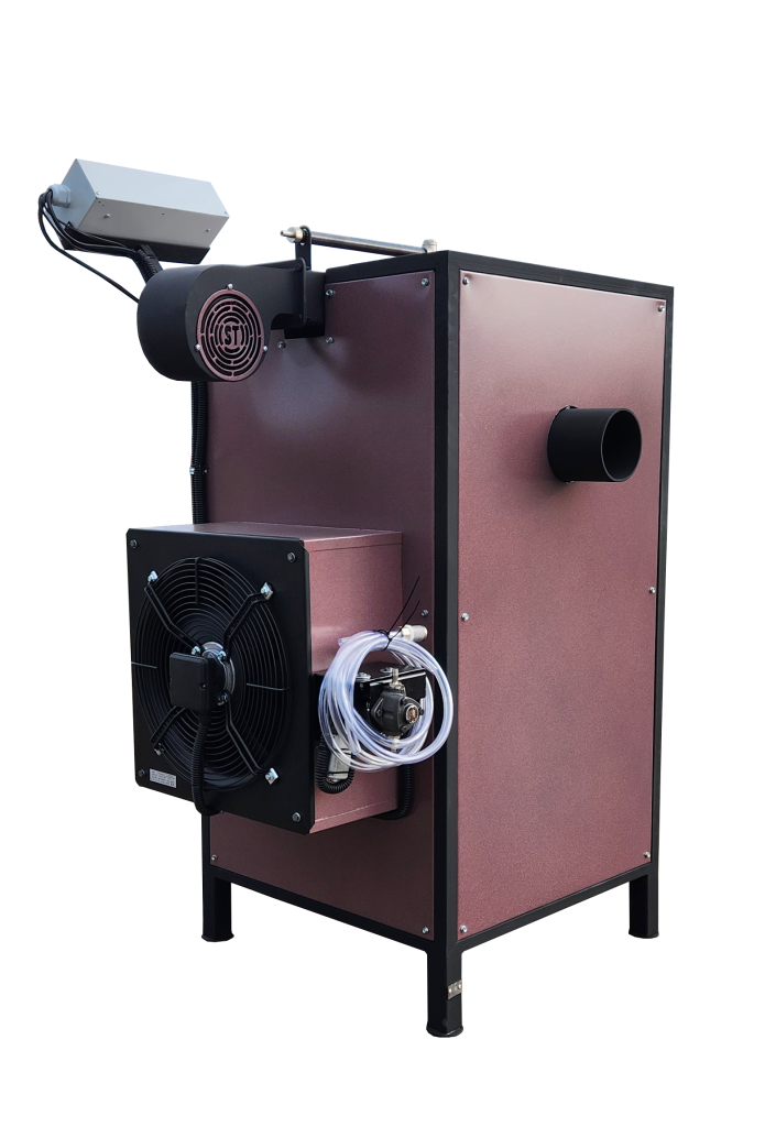 Воздушный калорифер “Ставрос" работает на отработанном масле и служит для отопления больших помещений  с объемом воздуха до 1700 куб.м.  Это большие автосервисы, СТО, цеха, складские и производственные помещения.