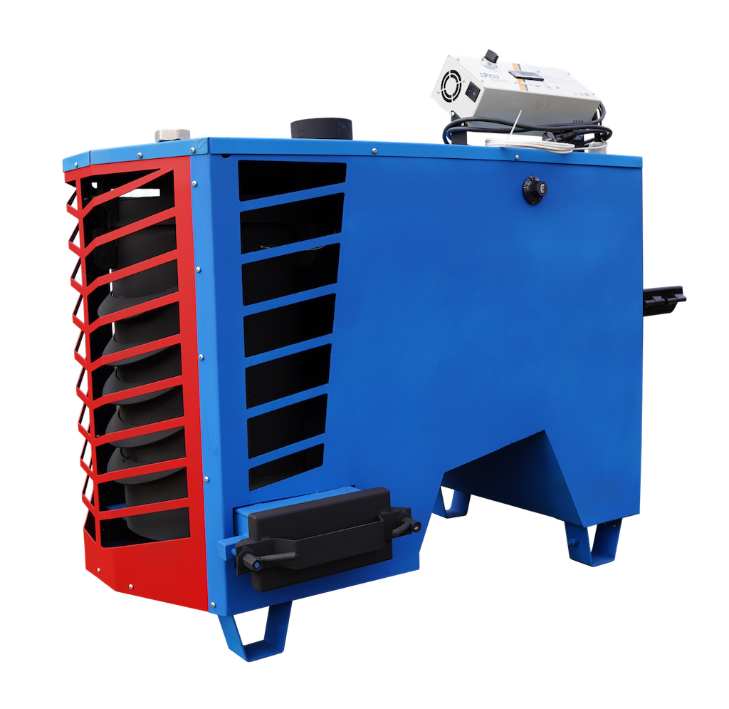 температура в помещении и топки регулируются с помощью блока автоматики.