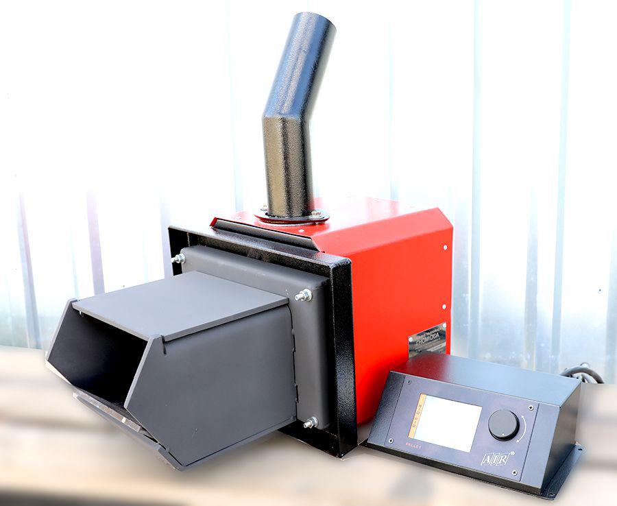 Наибольшая эффективность работы горелки достигается при работе на пеллетах изготовленных из древесных опилок и стружек. Допускается работа горелки на пеллетах, изготовленных из другого сырья (лузга подсолнечника, солома), но эффективность горелки снизится и потребуется чаще проводить ее обслуживание и чистку. Для обеспечения непрерывной и бесперебойной работы оборудования, предусмотрена усовершенствованная система самоочистки топки горелки от золы.